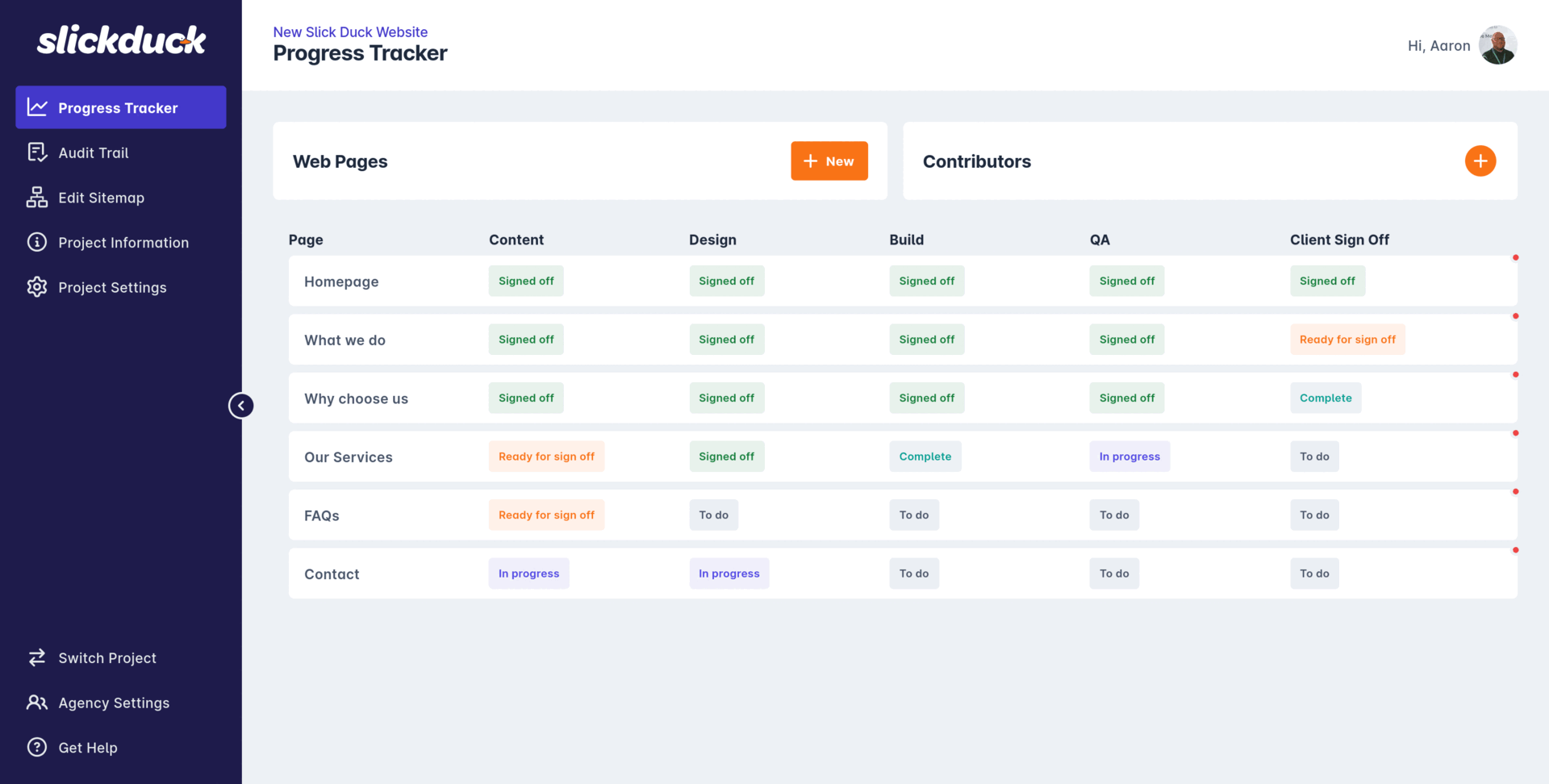 We built this to solve the communication issues with our own website builds. We hate having files scattered around the web, conversations half in email and half in Whatsapp and our clients responding to emails 3 weeks late. We think Slick Duck will help you manage your website builds better too.
